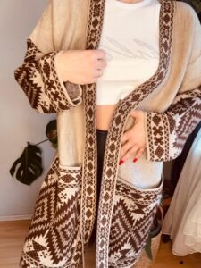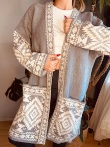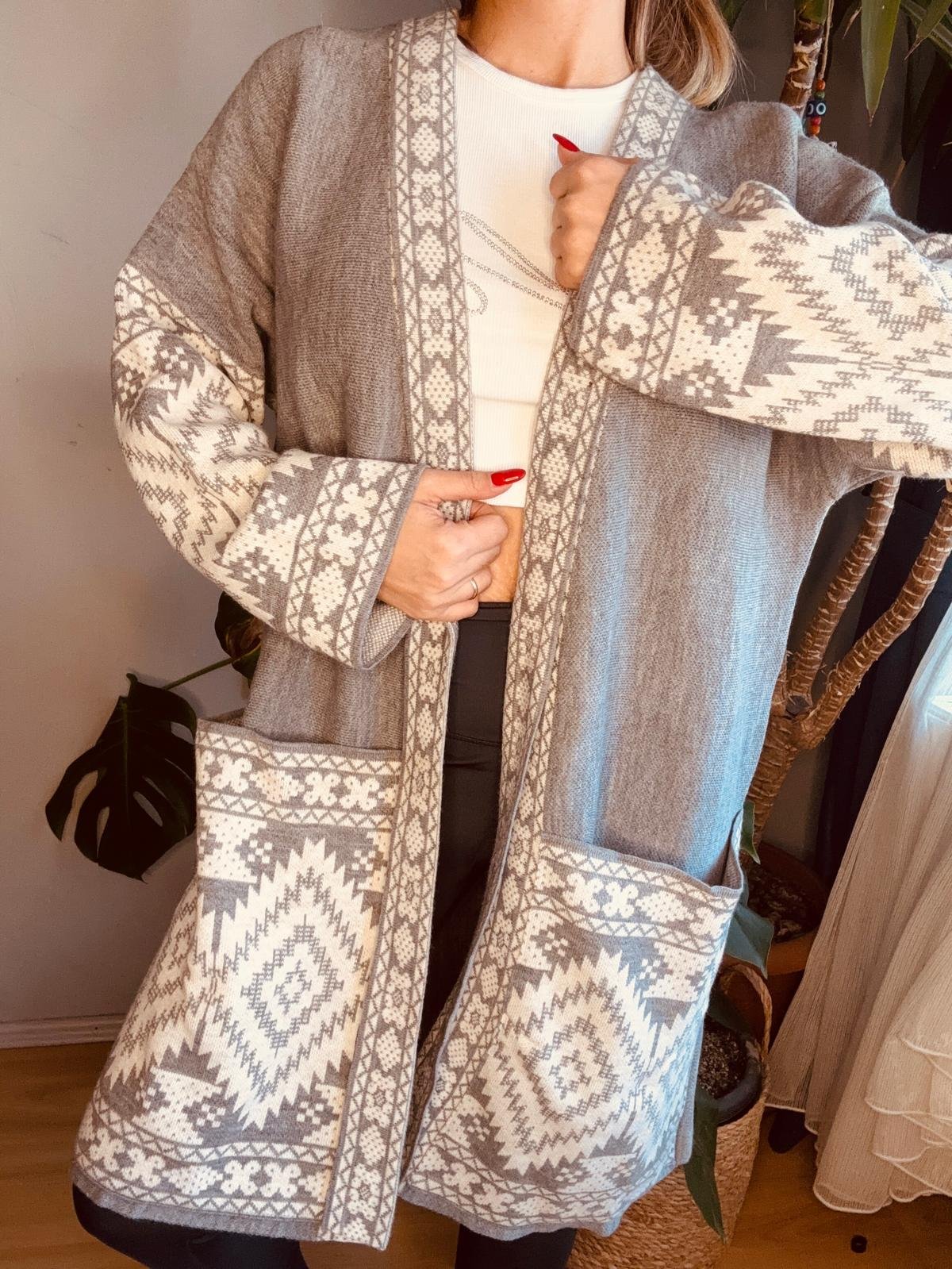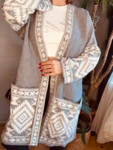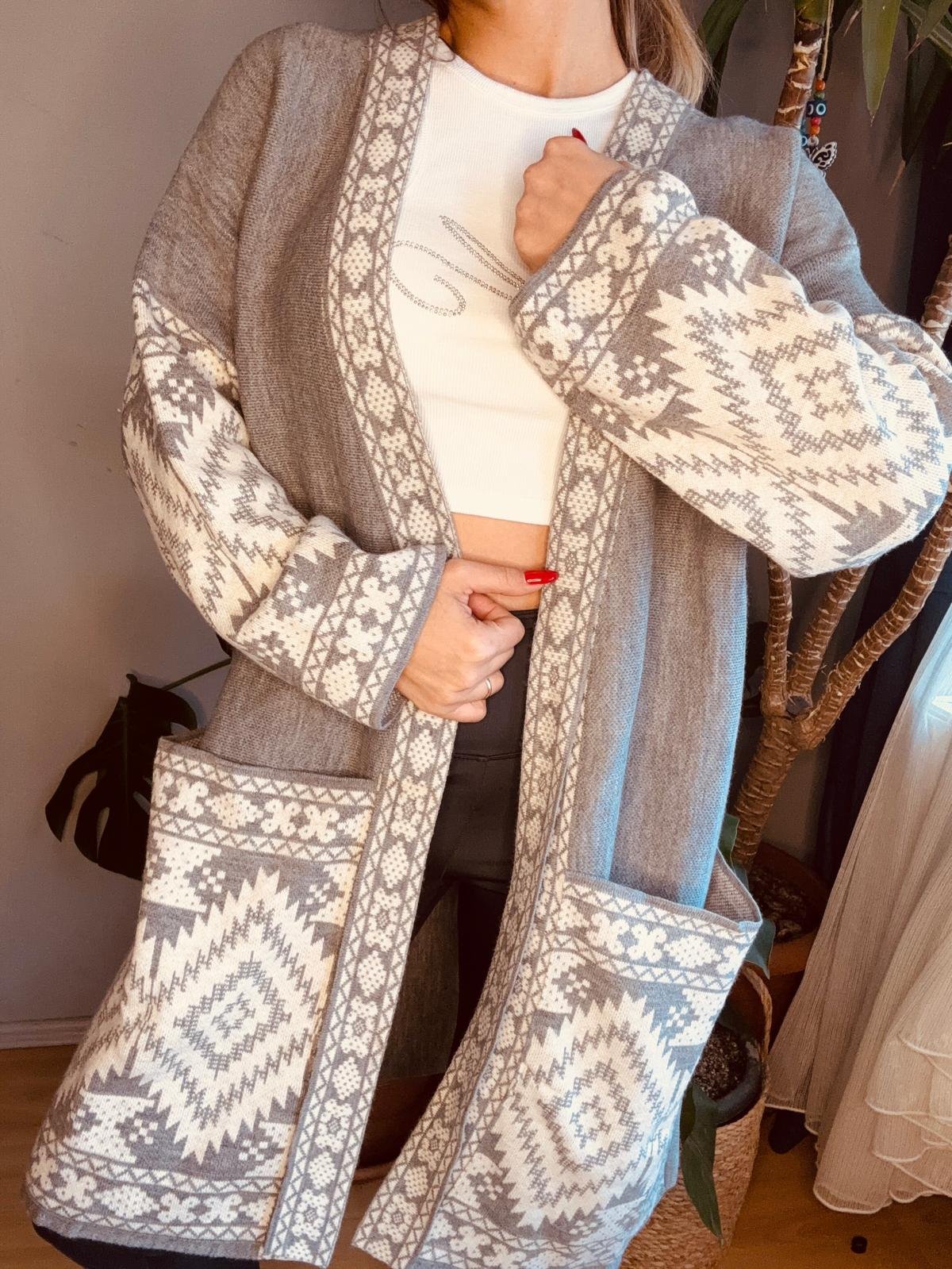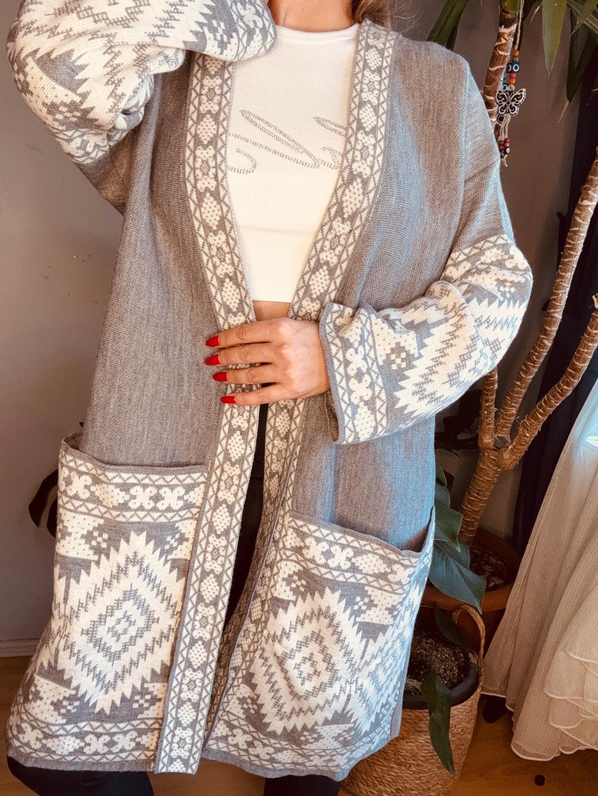 etnik desen uzun cep detay hırka