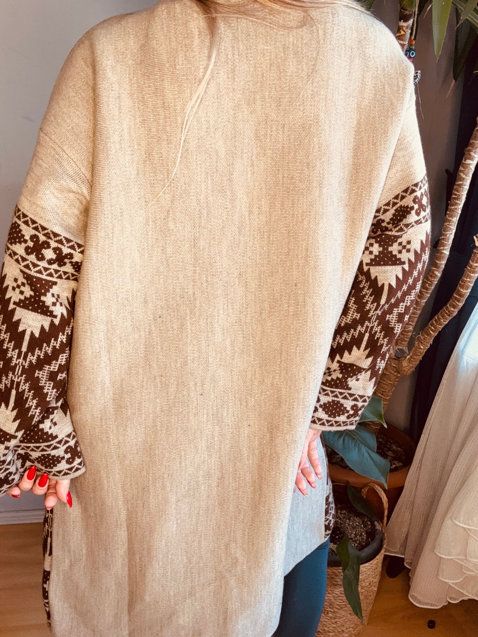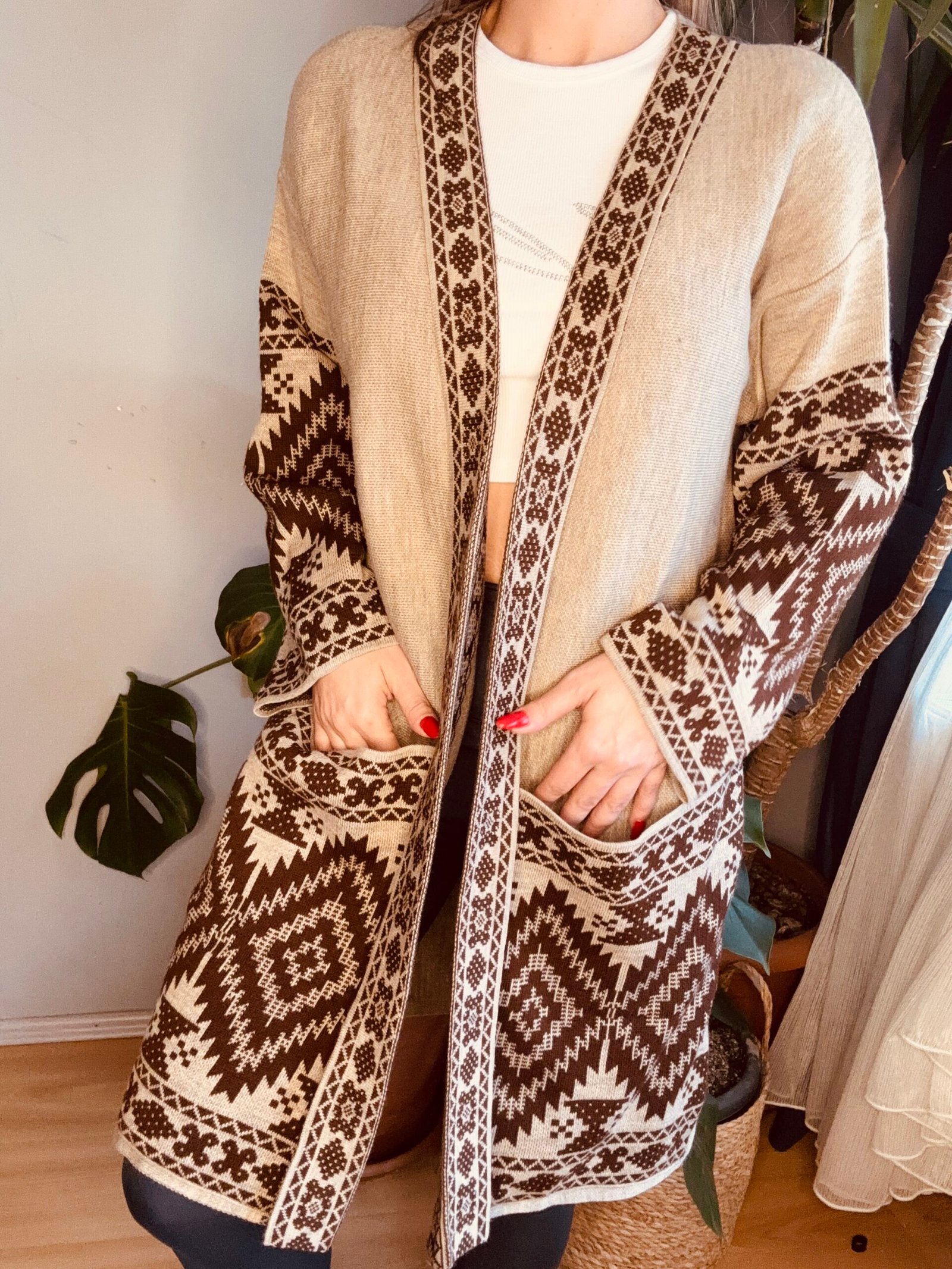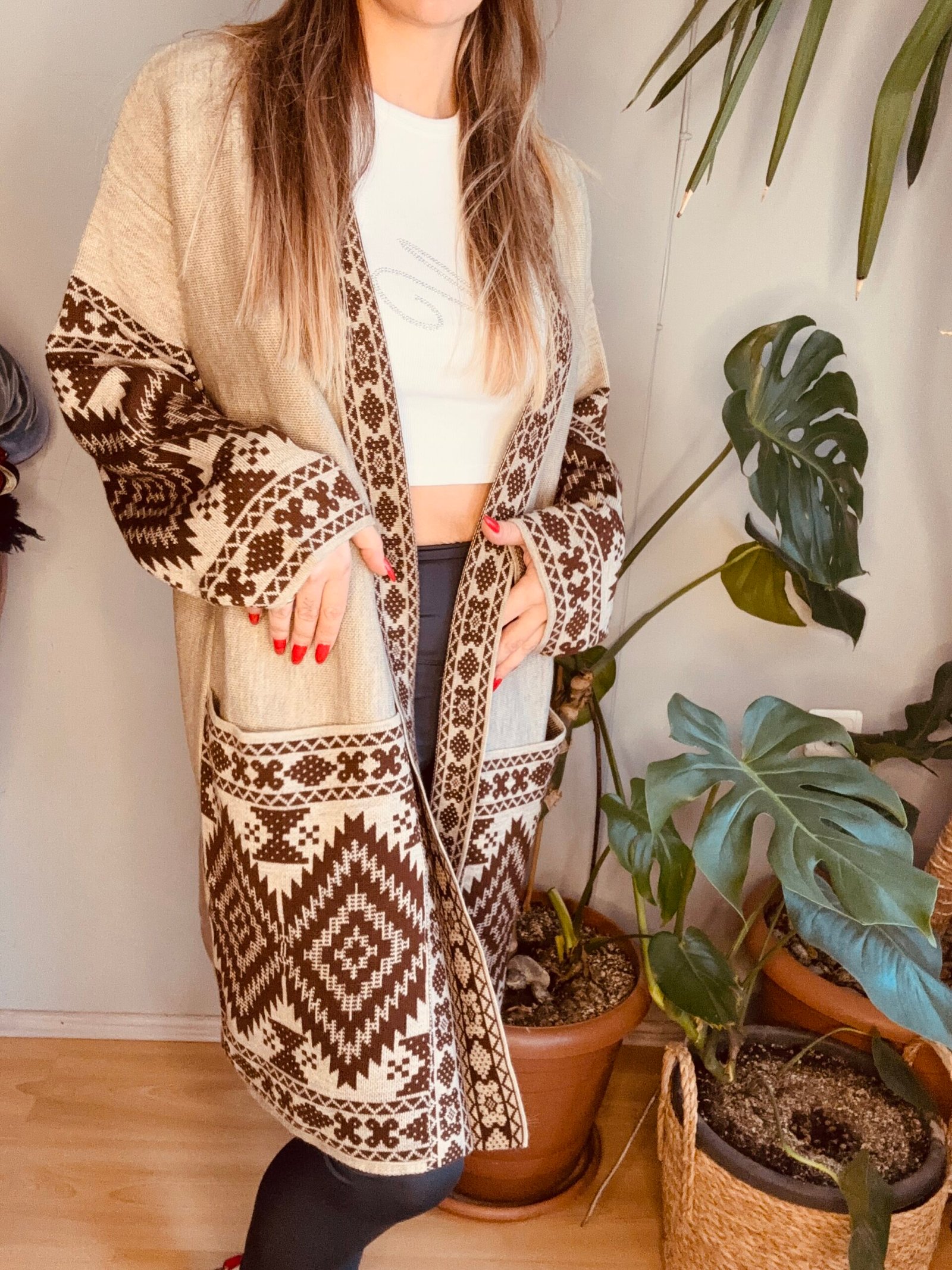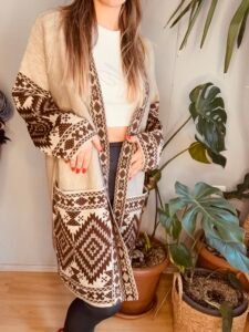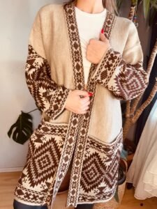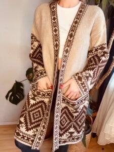 etnik desen uzun cep detay hırka